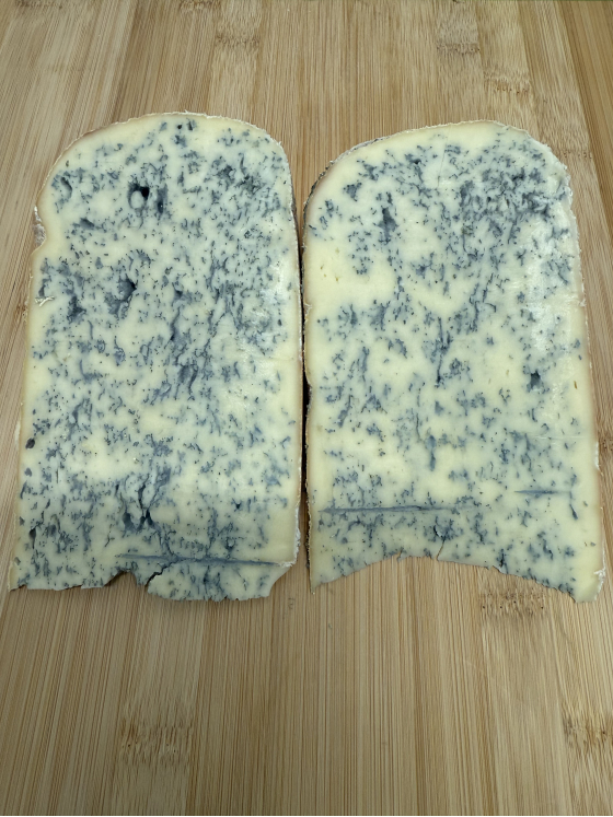 Lait cru de vache, sel, présure, ferments lactiques, penicillium bleu
