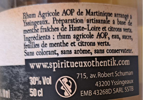 RHUM MENTHE "OTHENTIK" 30% 50CL