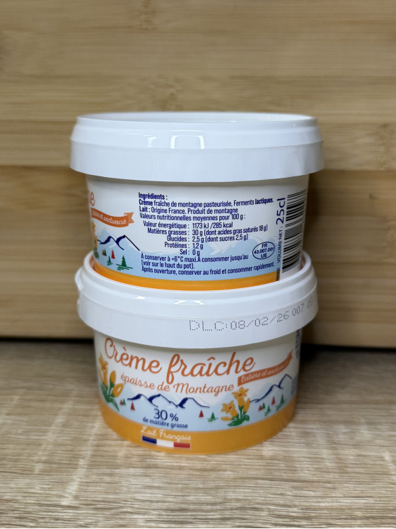 Crème fraîche de montagne pasteurisée, ferments lactiques