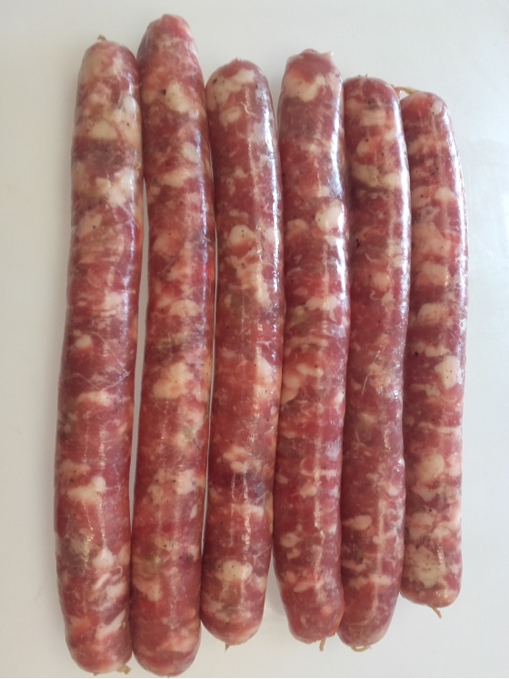 maigre et gras de porc, sel, poivre, ail, boyau naturel de mouton