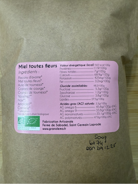 Tu es sportif ? Tu as des journées actives ? Tu as besoin de recharger tes batteries ? Rester en bonne santé et atteindre le niveau de performance physique et mentale que tu souhaites nécessite de l’énergie. L’énergie c’est des calories et l’apport régulier de nutriments indispensables : protéines, glucides, lipides, vitamines, sels minéraux et eau. 100mg de Granoléma (un gros bol) c’est 26% de ton besoin quotidien en énergie (2095 KJ). C’est beaucoup de protéines (12 g) ; très peu de sucre (10 g) dont plus de la moitié de fructose ; que des bonnes graisses 83% d’acides gras insaturés et aussi du calcium (425 mg) du potassium (10 mg) et du fer (3 mg). manger plus de fibres : elles favorisent une plus grande diversité du microbiote intestinal. Or plus celui-ci est riche et diversifié, mieux il fonctionne et nous protège contre certaines maladies. manger plus d’oléagineux : les noix, graines et huiles végétales contiennent beaucoup d’acides gras polyinsaturés et notamment les oméga-3 et -6 dont raffolent les microorganismes « anti-diabète » ou « anti-obésité ». lever le pied sur le sucre et éviter les édulcorants: ils détruisent une partie du microbiote ce qui a des effets dévastateurs : affaiblissement des défenses immunitaires ; développement des mycoses et des cellules cancéreuses ; augmentation de l’inflammation (troubles digestifs, fatigue excessive). manger le moins possible de viande rouge: le microbiote intestinal possède la capacité de dégrader certaines substances contenues dans la viande rouge et le produit de cette dégradation est hautement inflammatoire et accélère le développement des maladies cardiovasculaires.