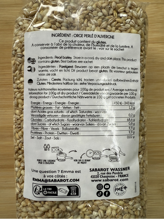 ORGE PERLE D'AUVERGNE 1 KG SABAROT