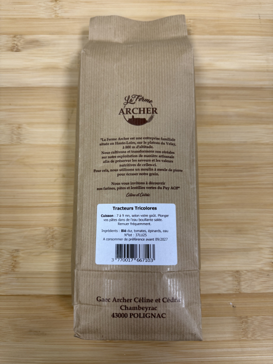 Pâtes sèches tracteurs tricolores 500 gr "la ferme archer "
