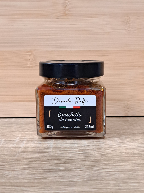 SOIT 25.94€ Ingrédients : tomates séchés 48%, huile d’olive extra vierge 52%, basilic, vinaigre, sel, ail, laurier, arômes naturels. Correcteur d’acidité : acide citrique. VALEUR NUTRIONNELLES pour 100 g Énergie 2 033 kj (486 kcal) Matières grasses 44 g Acides gras saturés 8 g Glucides 14 g Sucres 0 g Protéines 2 g Sel 3,5 g