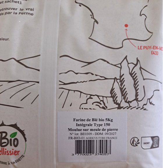 FARINE COMPLÈTE BIO PELLISSIER T150 5KG