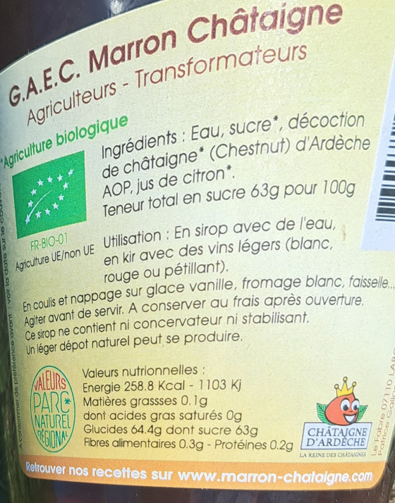 sirop de châtaigne 500ml bio