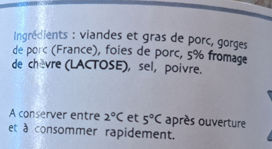 TERRINE DE CAMPAGNE FROMAGE DE CHEVRE 180GR