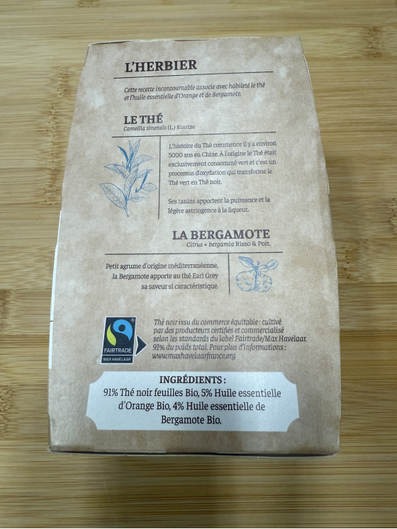 THE NOIR EARL GREY A L ESSENCE DE BERGAMOTE BIO PAGES 36G